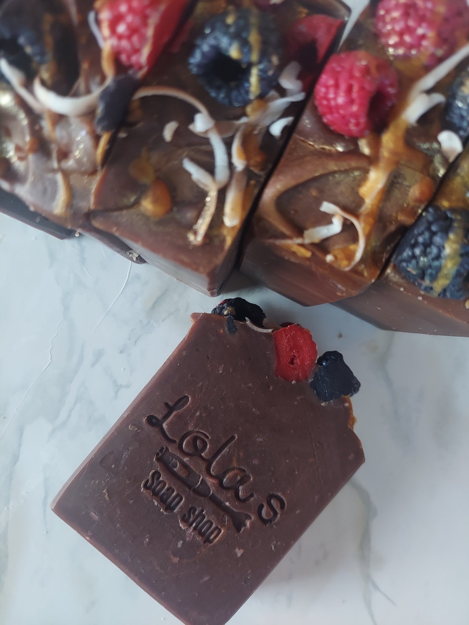 This soap is inspired by the sinful delight that is Sweet German chocolate cake drizzled in caramel, coconut, and butterscotch and topped with fresh berries... can you say YUM ?!