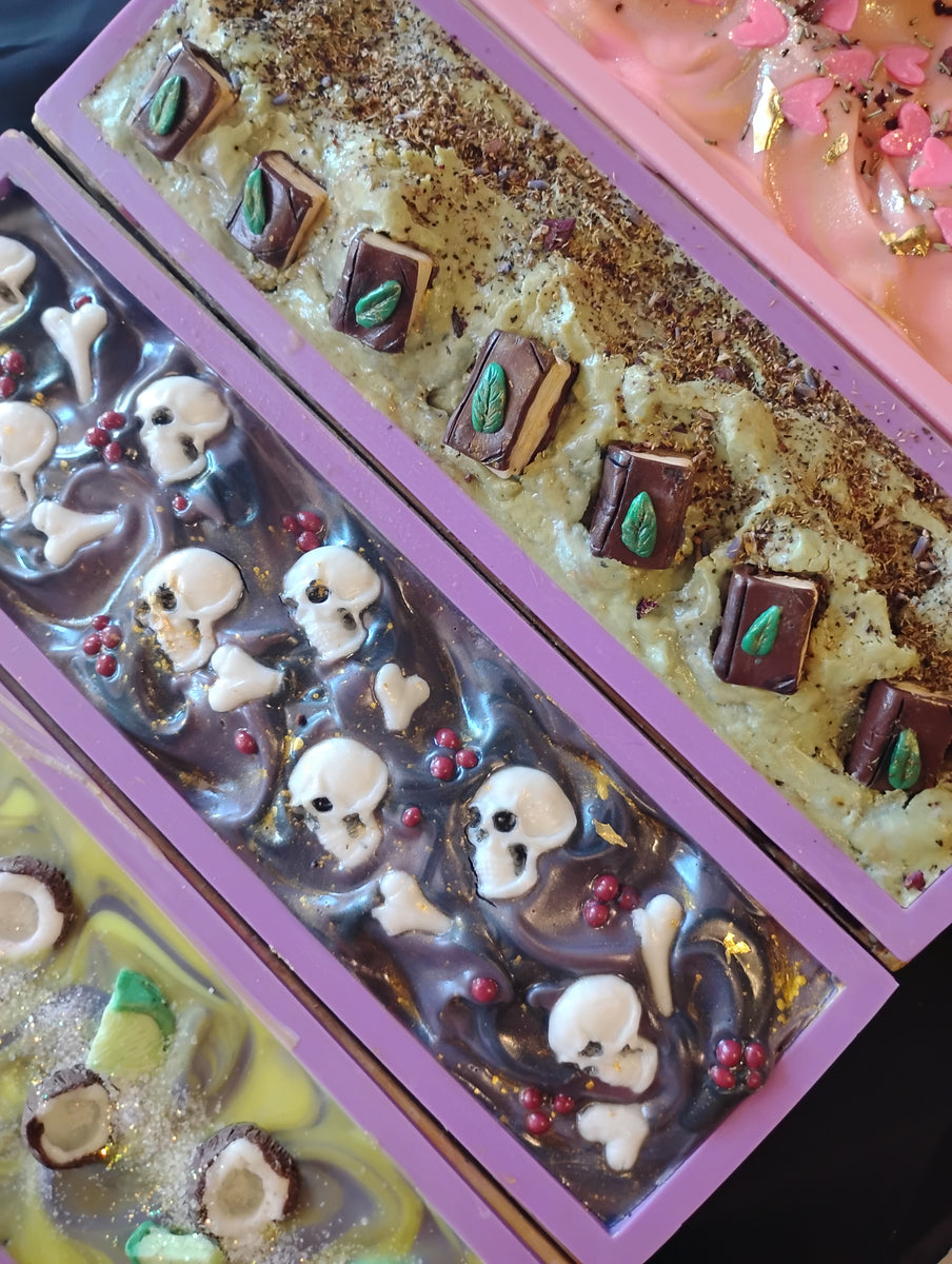 Our soaps are 100% Hand-Made-Molded-Poured-Cut , and made with A lot of Love , some sleepless nights, and just the right amount of Magic..